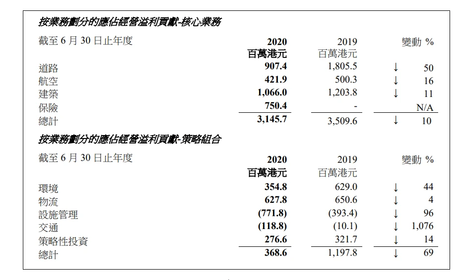 - 撇除於 2019 財政年度北京首都國際機場的股息收入,及於 2020 財政年度飛機出售溢利 減少,應佔經營溢利將增加 8%。