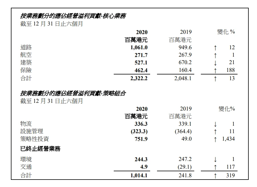 - 道路業務的應佔經營溢利上升12%,至10.61億港元